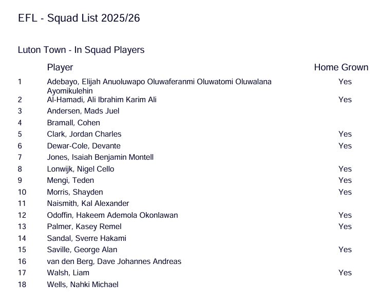 To view our 2025/26 EFL Registered First Team Squad, click HERE.